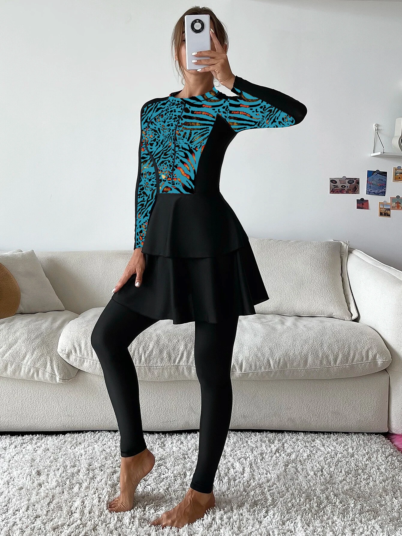 Dive into confidence and contemporary style with our 3-piece Islamic Burkini Set. Designed for the modern Muslim woman, this swimwear combines full coverage with fierce fashion. The trendy leopard print allows you to express your personality while honoring your faith. Perfect for swimming, beach trips, or any water activity.