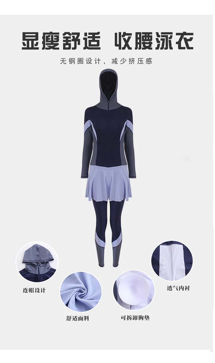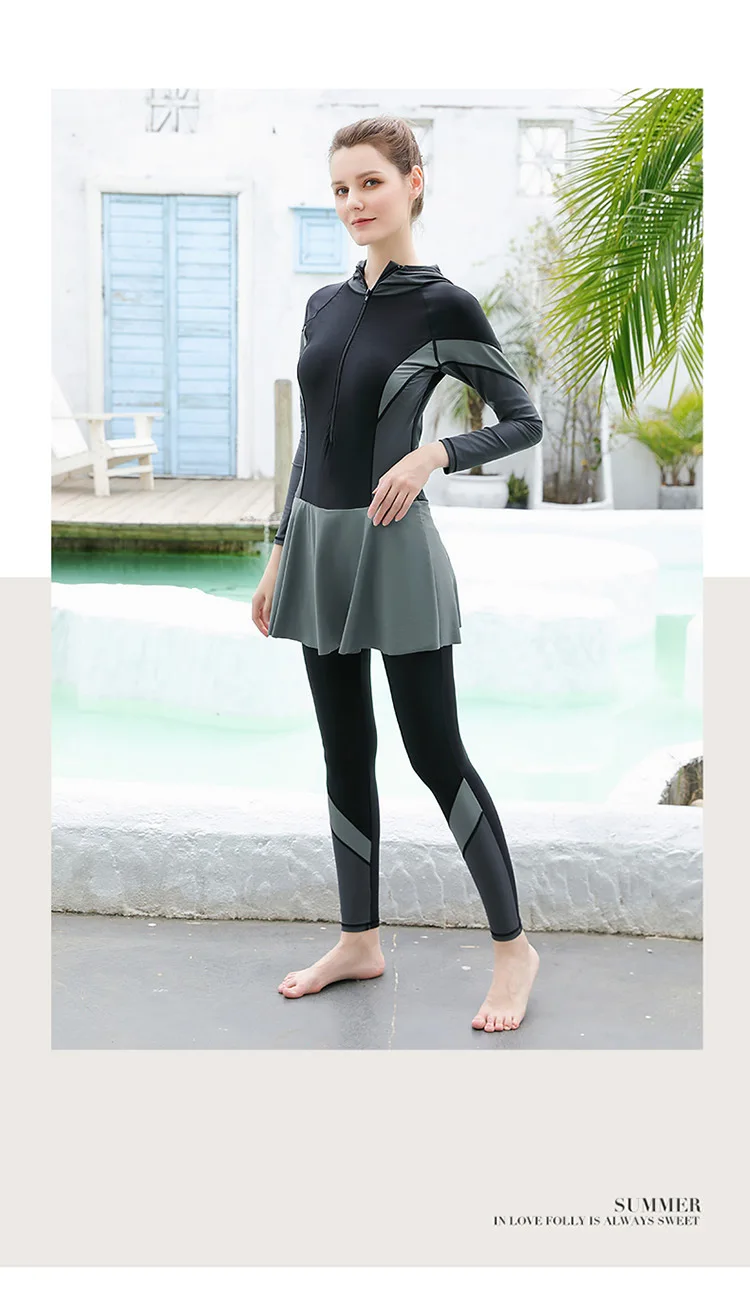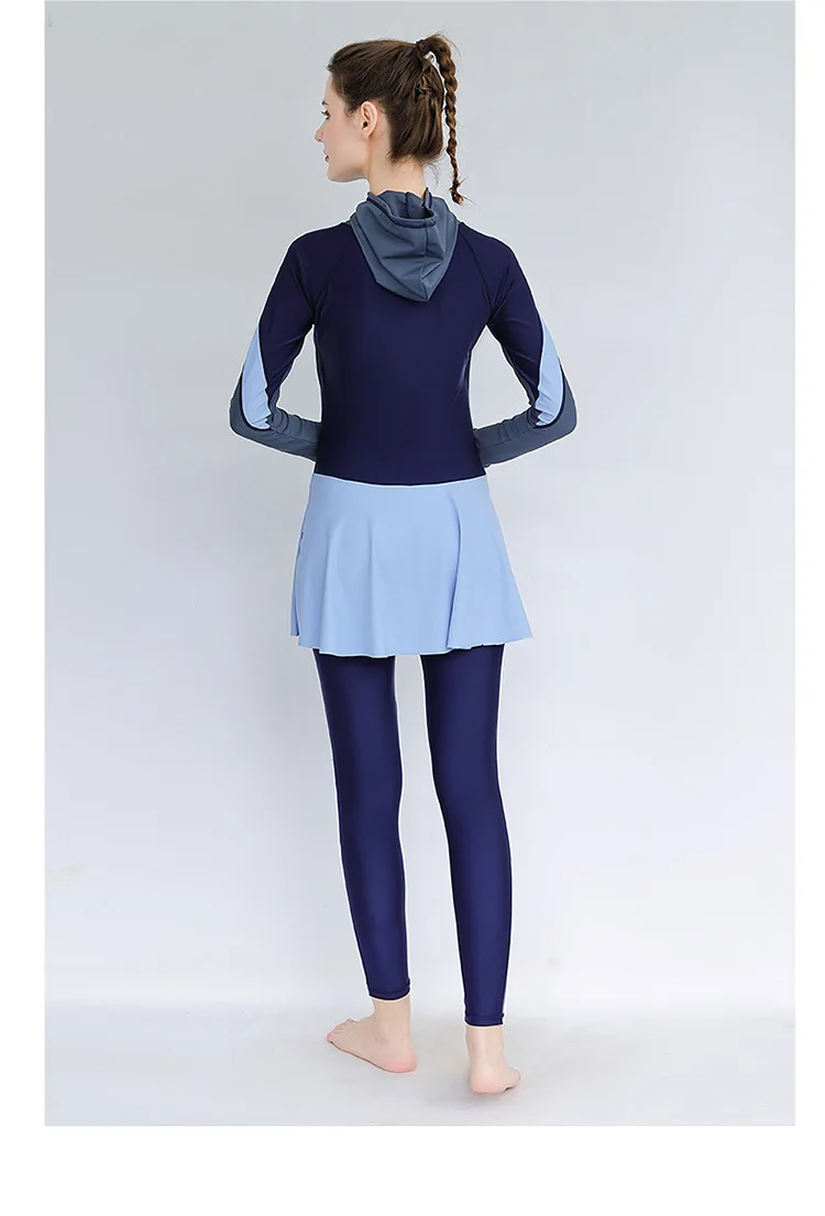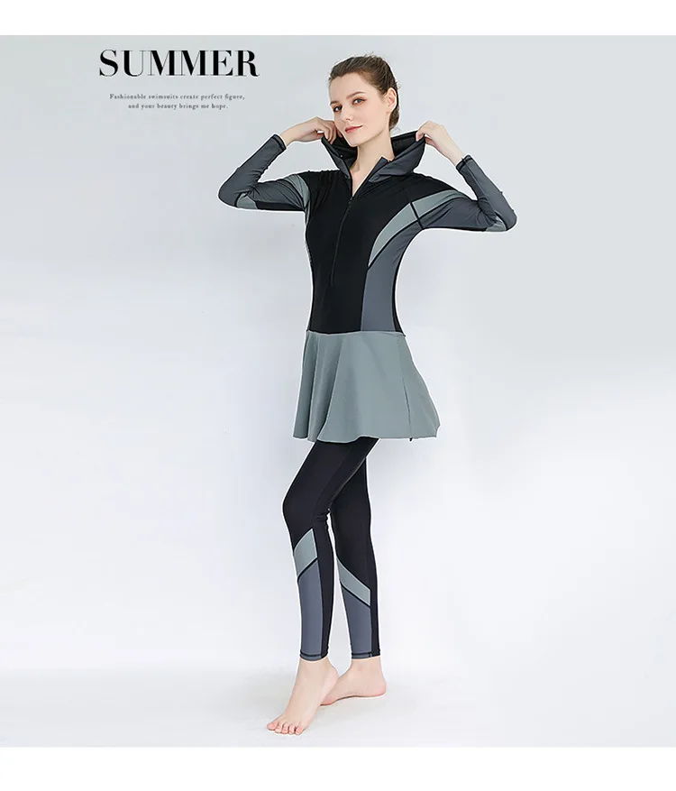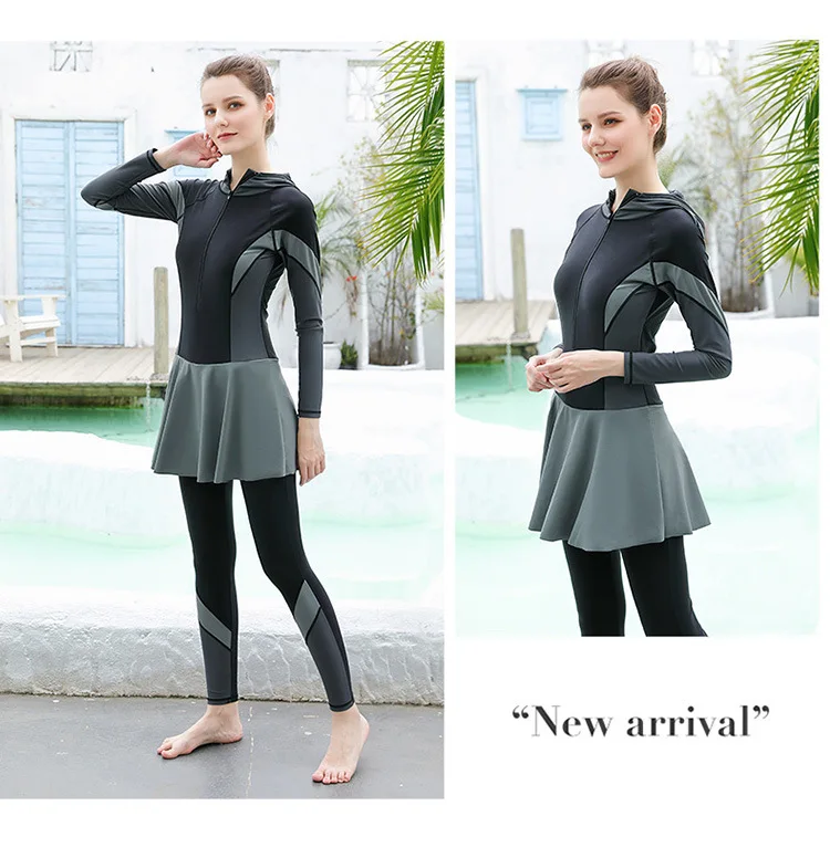 3 PCS Swimwear Women Modest Patchwork Hijab Long Sleeves Sport Swimsuit Burkinis Wear Bathing Suit
