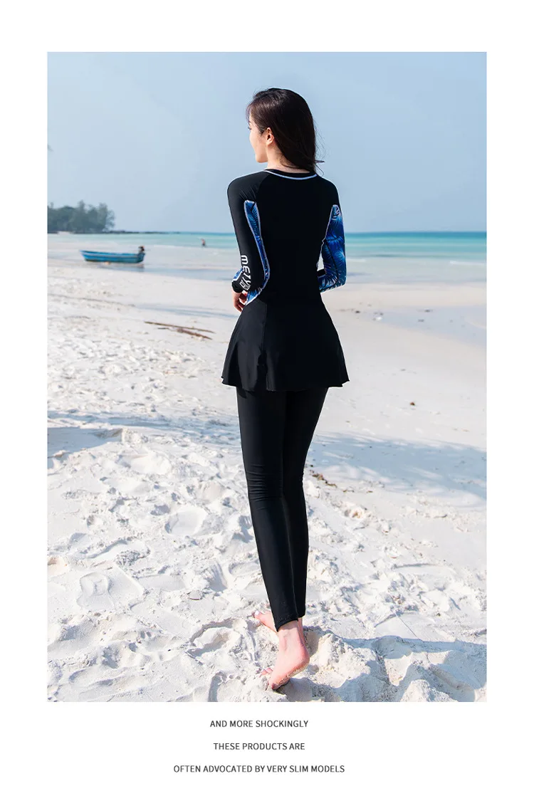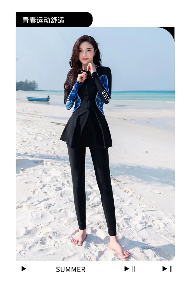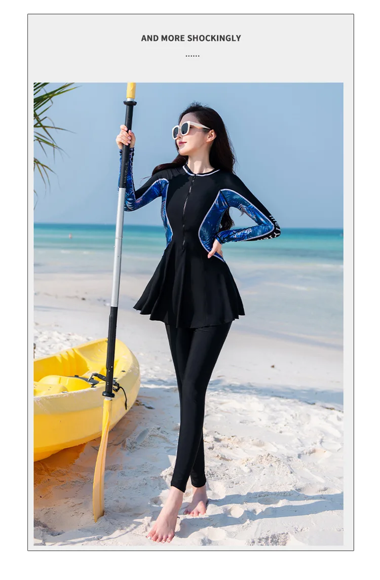 3 PCS Swimwear Women Modest Patchwork Hijab Long Sleeves Sport Swimsuit Burkinis Wear Bathing Suit