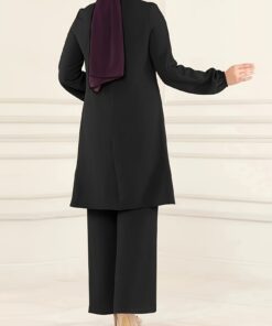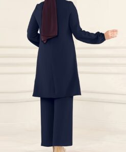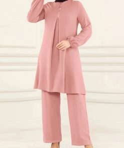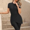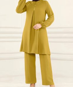 Ramadan Elegant Solid Muslim Two-piece Set, Long Sleeve Crew Neck Top & Straight Leg Pants Outfits, Women’s Clothing